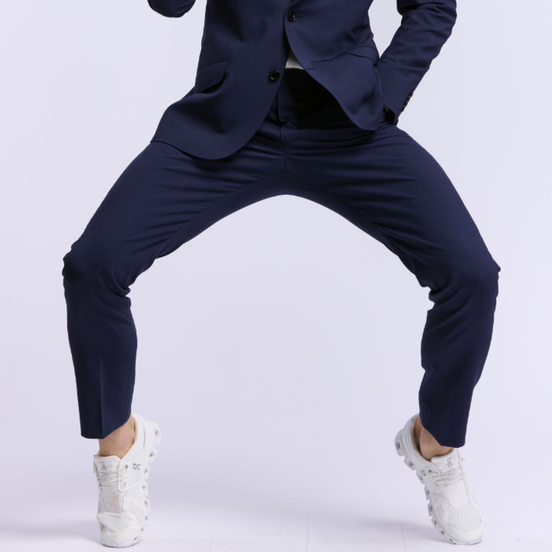 Hopper est ultra-confortable.Son tissu extensible -98% laine mérinos, 2% élasthane- ne froisse pas. Il est léger, souple et respirant. Idéal en mi-saison, pour les beaux jours et les déplacements. Légèrement texturé, de couleur bleu marine.